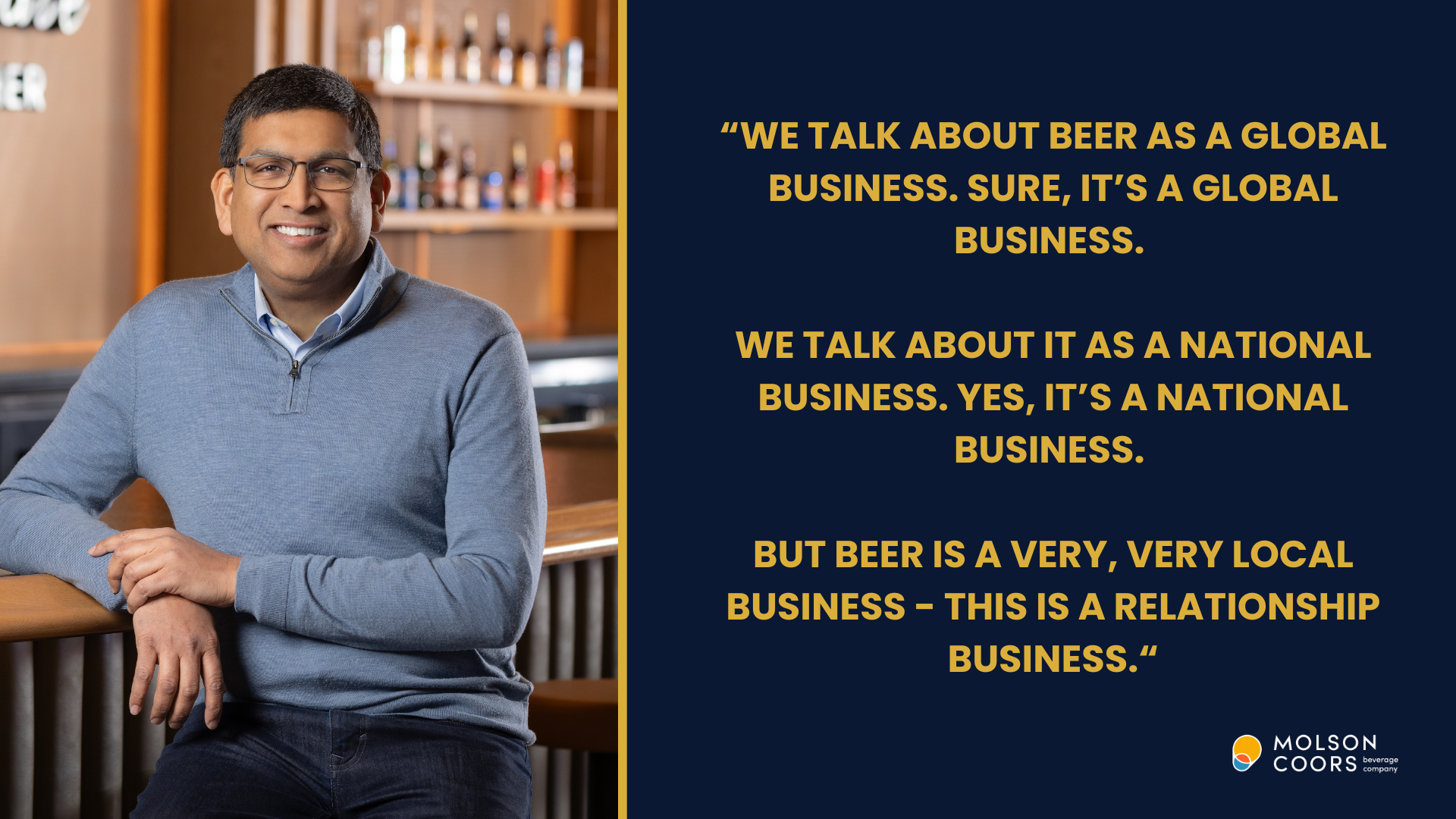 Molson Coors has emphasized its plans to shift resources closer to its consumers and customers, which puts the adage of beer as a highly local business front-and-center for both the business and Rahul’s strategic vision.